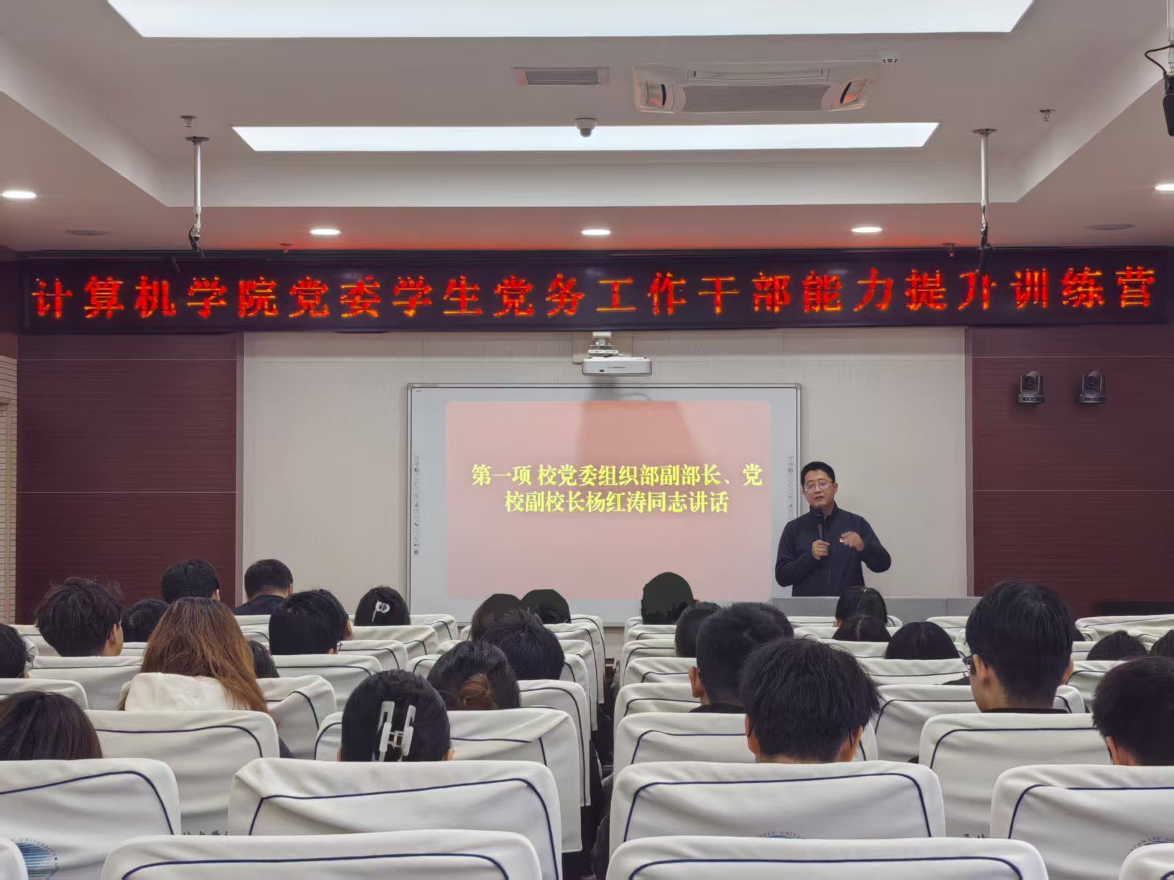 为进一步加强学生党务工作队伍建设,提升学生党务干部的政治素养和业务能力,11月28日,计算机学院(软件学院)在院楼631报告厅举办“学生党务工作干部能力提升训练营”。学院党委书记赵万峰、校党委组织部副部长兼党校副校长杨红涛、学院党委副书记兼党委分党校校长贾文涛参加活动,学院党委分党校学生干部及各党支部学生委员参加培训,活动由贾文涛主持。